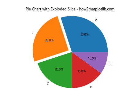 plt.title('Pie Chart with Exploded Slice - how2matplotlib.com')